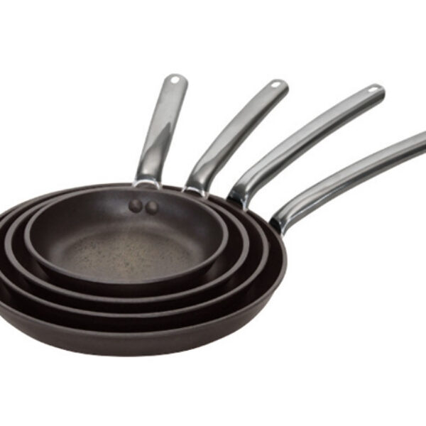 Profesjonalna patelnia wyprodukowana z grubego aluminium. Wysokiej jakości powłoka non-stick powoduje, że potrawy nie przywierają. Optymalna jakość pokrycia non-stick: nieprzywierająca ale jednocześnie gładka powierzchnia pozwala przygotować posiłek przy minimalnej ilości tłuszczu. Patelnia jest idealna do gotowania delikatnych potraw na wolnym ogniu, a także do podgrzewania, duszenia, gotowania oraz regeneracji i dokańczania dań. Posiada solidnie nitowany, ergonomiczny i nienagrzewający się uchwyt ze stali nierdzewnej. Odporna na odkształcenia, uderzenia i nagłe zmiany temperatur. RADA: Patelnię nagrzewać tylko wtedy, gdy jest na niej tłuszcz lub potrawa. Do mieszania używać łopatek z tworzywa – nie rysują powierzchni non-stick. Czyszczenie: przed zanurzeniem w wodzie należy odczekać aż patelnia ostygnie. Stosować miękką ściereczkę oraz gąbkę. Można myć w zmywarkach.