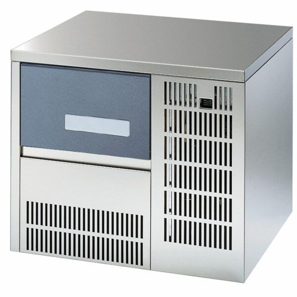 • Seria IC to linia profesjonalnych kostkarek do lodu, które idealnie sprawdzają się w dyskotekach czy hotelach• Wszystkie modele wykonane są ze stali nierdzewnej• Kostki wytwarzane są metodą natryskową• Urządzenie bezawaryjne, łatwe w obsłudze, energooszczędne i wydajne• Dużym atutem kostkarek jest zgrabny, stosunkowo niewielki kształt produkowanej kostki o wadze 14, 17 g, co nie pozostaje bez wpływu na walory estetyczne serwowanych napojów• Jest to idealna kostkarka do zabudowy, ze względu na umieszczenie wszystkich kontrolek oraz wentylacji na przednim panelu• Zużycie wody 5,1 l/kg• Chłodzona powietrzem• Kostka pełna (full cube) kryształowa• Obudowa stworzona z szczotkowanej stali nierdzewnej AISI 304• Izolowane chowane drzwi• Działanie elektromechaniczne• Izolacja zasobnika wolna od HCFC - organicznych związków chemicznych z grupy freonów• Łatwe czyszczenie dzięki zaokrąglonym powierzchniom• Zgodność z dyrektywą RoHS• Model przygotowany do pracy w strefie tropikalnej +43°C• Model podblatowy• Czynnik chłodniczy R404A - R452A• Produkcja w czasie 24 godzin:◦ Temperatura powietrza: 10°C, temperatura wody: 7°C, produkcja kg/24 h: 30◦ Temperatura powietrza: 21°C, temperatura wody: 15°C, produkcja kg/24 h: 26◦ Temperatura powietrza: 32°C, temperatura wody: 21°C, produkcja kg/24 h: 22• Warunki pracy:◦ Temperatura powietrza: od 10°C do 43°C◦ Temperatura wody: od 3°C do 32°C◦ Ciśnienie wody: od 1 bar (14 psi) do 6 bar (84 psi)