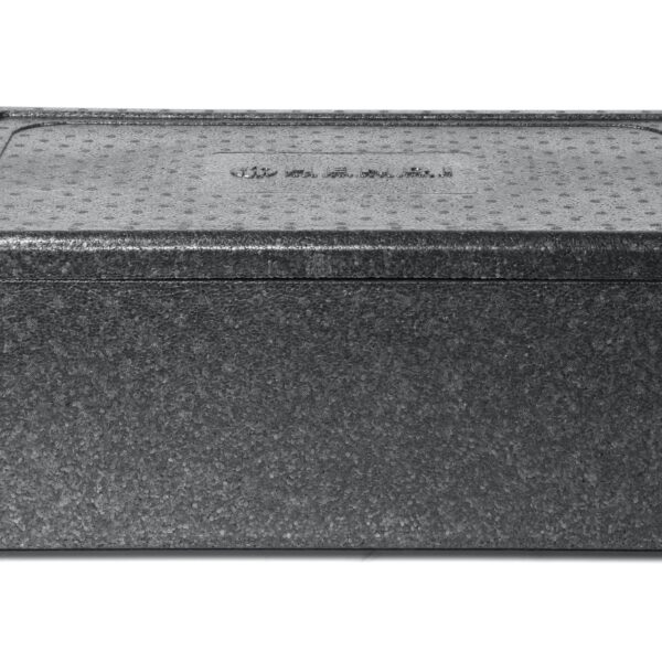 Pojemnik termoizolacyjny wykonany z pianki polipropylenowej, która nie zawiera freonu. Posiada szary korpus i szarą pokrywę oraz ergonomiczne uchwyty transportowe. Może być piętrowany. Odporność termiczna od -20°C do +110°C.