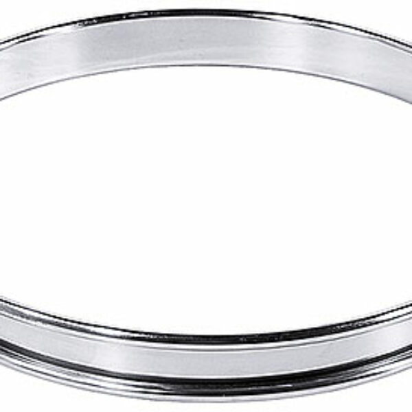 Obręcz cukiernicza wykonana z polerowanej stali nierdzewnej z wywiniętym rantem.