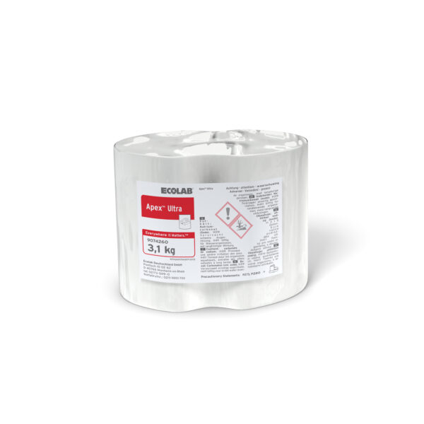 Środek w formie bloku do mycia w wodzie o średniej twardości, z dodatkiem wybielacza 3,1 kg | ECOLAB, Apex Ultra