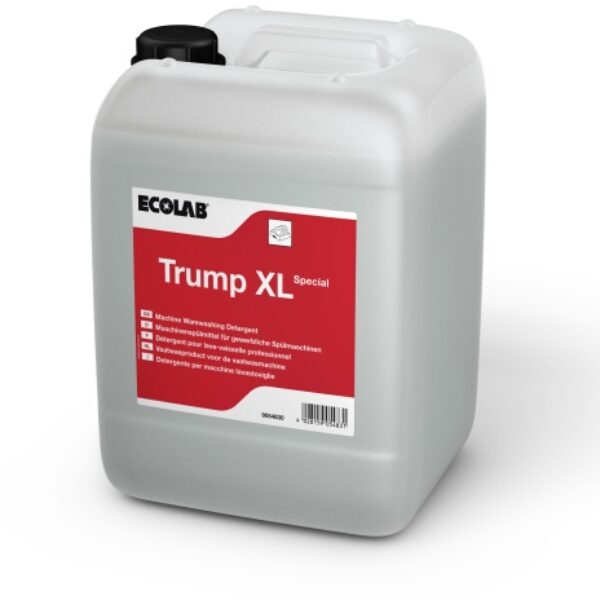 Płynny detergent do mycia naczyń Trump Event Special to wysoce skoncentrowany, niezwykle wydajny środek do mycia naczyń w zmywarkach przemysłowych, idealny do średniej i twardej wody, gwarantujący czystość w jednym cyklu pracy bez konieczności ponownego mycia naczyń. Produkt nie zawiera NTA, EDTA, fosforanu i chloru. Przeźroczyste opakowania ułatwiają kontrolę zużycia produktu.