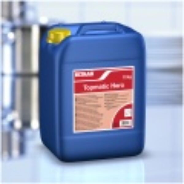 Płynny środek do mycia naczyń w zmywarkach przemysłowych Topmatic Hero to skuteczny środek o działaniu bakteriobójczym zawierający inhibitory korozji zabezpieczające zmywarkę. Likwiduje trudne do usunięcia zabrudzenia a także zapewnia doskonałe rezultaty mycia.