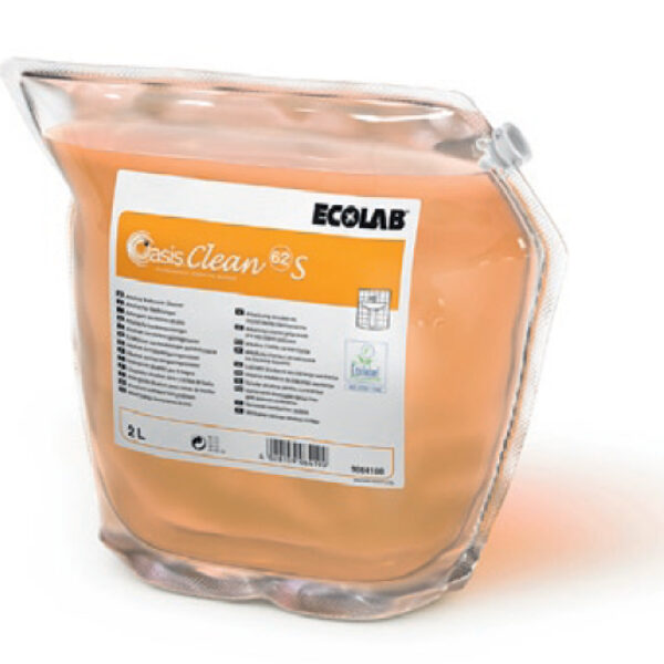 Oasis Clean 62 S jest bezpiecznym dla powierzchni marmurowych, stężonym, biodegradowalnym, alkalicznym środkiem do czyszczenia łazienek, w łatwy sposób usuwającym kamień, mydło, tłuszcz i ogólne zabrudzenia oraz zapobiega gromadzeniu się kamienia. Doskonale nadaje się do wszystkich wrażliwych na działanie kwasu powierzchni w pomieszczeniach sanitarnych a zwłaszcza do marmuru i lastryko. W celu zwiększenia bezpieczeństwa użytkownika, Oasis Clean 62 S został oznaczony kolorem, a także posiada świeży i delikatny zapach.Oasis Clean 62 S jest częścią asortymentu produktów oznaczonych certyfikatem EU Ecolabeljako wyrób ekologiczny.