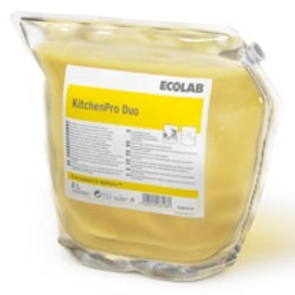 KitchenPro Duo jest mocnonawilżającym, uniwersalnym środkiem do przeznaczonym do codziennego czyszczenia powierzchni i sprzętów, w tym kuchenek, blatów, krajalnic, ścian i posadzek bez konieczności stosowania indywidualnych środków ochrony. Działa skutecznie usuwając tłuszcze i oleje z powierzchni i posadzek i nie pozostawiając smug. Zamknięty system wyklucza bezpośredni kontakt z koncentratem produktu a oznaczenie kolorem eliminuje ryzyko pomyłki w wyborze produktu odpowiedniego do danego zastosowania.Zgodnie z wytycznymi DVV środek do dezynfekcji powierzchni KitchenPro DES jest skuteczny przeciw koronawirusom w przypadku stosowania roztworu 0,75% w czasie 15 min.