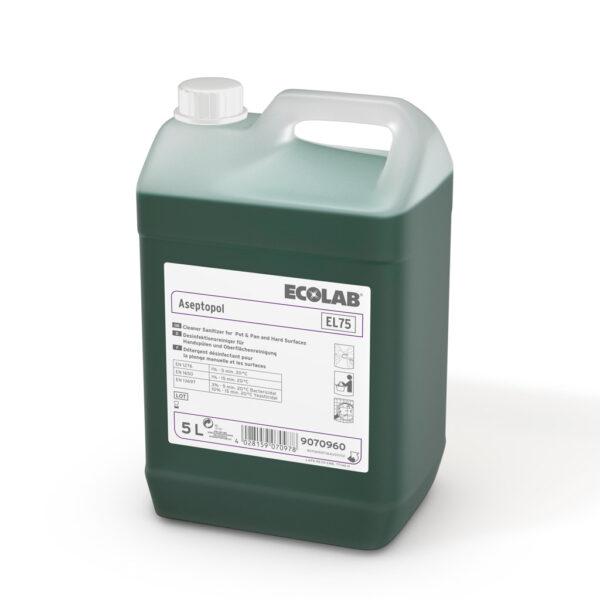 Aseptopol EL 75 jest skutecznym, antybakteryjnym środkiem czyszczącym o szerokim zastosowaniu - może służyć jako jako środek do mycia patelni i garnków lub czyszczenia wszelkich wodoodpornych powierzchni. Zapewnia bezpieczeństwo żywności.