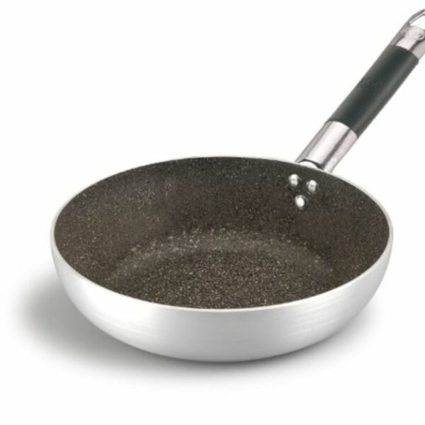 Rewolucyjna wśród patelni, nowa linia INFINITY. Nieprzywierająca powłoka Teflon Infinity nakładana jest natryskowo, jako jedyna jest w stanie stawić́ czoła popularnym metalowym akcesoriom kuchennym. Właścicielem znaku Teflon jest firma DuPont, która opatentowała technologię GenX di DuPont gwarantującą̨ niewystępowanie kwasów PFOA. Patelnia znakomita do pracy do 260°C . 225W/°K oznacza 14 razy lepsze przewodnictwo ciepła niż̇ stal nierdzewna. Czystość́ 99% aluminium gwarantowana certyfikatami CEE nr 1935/2004 i EN 601-602. Grubość́ 3 mm.