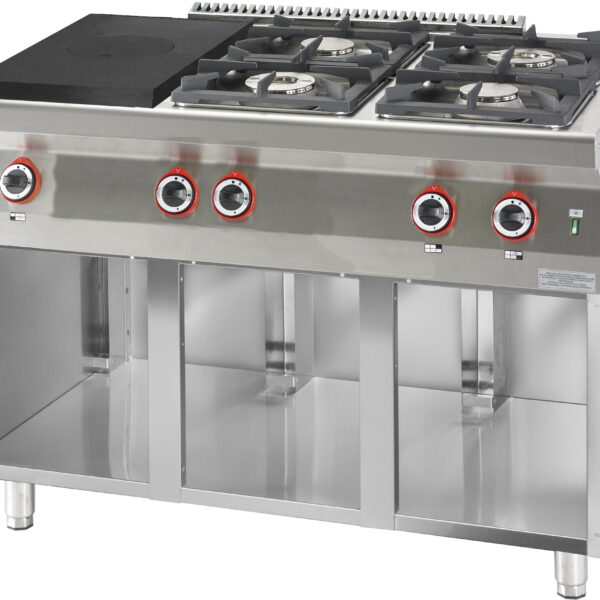 Kuchnia gazowa 4-palnikowa z płytą grzewczą, na podstawie zamkniętej, 28,5 kW, 1200x700x900 mm | KROMET, 700.KG-4/I-400.S