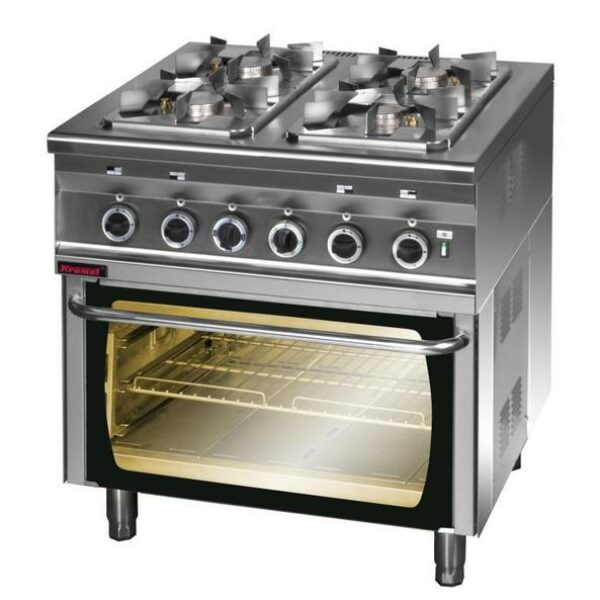 Kuchnia gazowa 4-palnikowa z piekarnikiem elektrycznym statycznym GN 2/1, 19,5 kW, 800x700x900 mm | KROMET, 000.KG-4S/PE-2