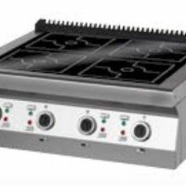• Profesjonalna kuchnia indukcyjna• Pola: 4x 5 kW• Duża oszczędność energii elektrycznej• Szybka reakcja na zmianę nastawy• Łatwość utrzymania w czystości - brak możliwości przypalenia wykipin• Duże bezpieczeństwo użytkowania - brak możliwości poparzenia o elementy urządzenia• Wysoka sprawność i krótki czas zagotowania• Płyta górna wykonana ze stali nierdzewnej o grubości 1,5 mm• Kontrola obecności garnka• Ergonomiczne i duże pokrętła dla łatwej regulacji mocy z pierścieniami uszczelniającymi (zabezpieczenie antybryzgowe), zwiększające higienę• Prosimy sprawdzić przydział mocy dla obiektu w którym będzie pracować urządzenie