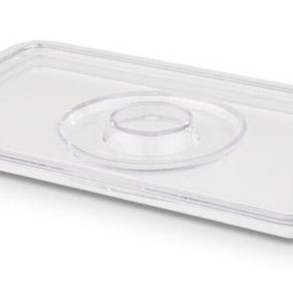 Pokrywka prostokątna o wymiarach 265x162 mm GN 1/4 z wycięciem na łyżkę. Wykonana z tworzywa SAN. Można myć w zmywarkach. Wytrzymuje temperaturę do +120 stopni Celsjusza.