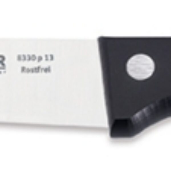 Ergonomia: dwu- lub trzykrotnie nitowana lub jednolita rękojeść zapewnia bezpieczne trzymanie podczas wszystkich prac kuchennych. Rękojeść z POM: polioksymetylen jest szczególnie stabilnym w formie i sztywnym tworzywem. Jest on oczywiście zgodny z wymogami rozporządzenia w sprawie środków spożywczych i towarów konsumpcyjnych.