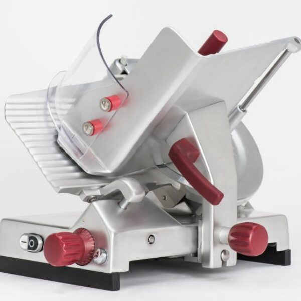 Seria krajalnic Inoxxi R zawiera modele ręczne z nożem pochylonym. Przeznaczona do użytku w supermarketach, sklepach i cateringu. Idealne do krojenia wędlin i sera. Wbudowana ostrzałka umożliwiająca skuteczne ostrzenie z zachowaniem wszelkich wymogów bezpieczeństwa. Ergonomia urządzenia pozwala istotnie zredukować czas niezbędny na czyszczenie i konserwacje. Dodatkowo urządzenie jest bardzo ciche w pracy. Grubość krojonego plastra od 0 do 13 mm.Dodatkowe informacje:- Możliwość blokowania docisku produktu w dwóch położeniach- Gumowana podstawa lepsza przyczepność do podłoża i mniejsza ilość zabrudzeń pod urządzeniem- Metalowe bolce w docisku krojony produkt jest lepiej przytrzymywany.- Silnik o mocy 250W (220V)- Wielkość krojonych produktów: 200mm (średnica); 200x220 (prostokąt)- Grubość plastra: 0-13mm- Wymiary urządzenia (przestrzeń robocza): 630x440x460 mm- Waga urządzenia: 22 kg