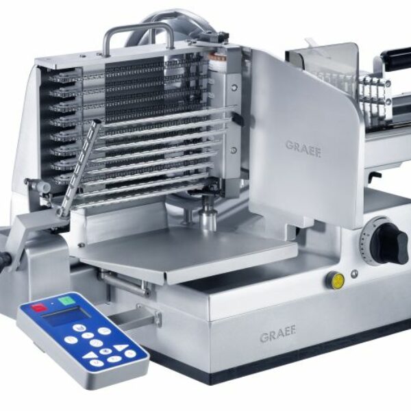 Krajalnice automatyczne VA firmy Graef to innowacyjna technologia, wysokogatunkowe materiały oraz ergonomicznie zaprojektowane urządzenia. Co więcej urządzenia firmy Graef spełniają najwyższe oczekiwania co do bezpieczeństwa ich użytkowania. W skrócie wszystko co potrzeba do lepszego i wydajniejszego krojenia. Intuicyjny panel operatora pozwala w szybki sposób uzyskać odpowiednie ułożenie pokrojonego produktu: 4 kolumny po 6cm każda, 4 rzędy z dowolnie ustalonym odstępem pomiędzy nimi, po okręgu z wieloma warstwami, w rzędach jeden plasterek na drugim.Dodatkowe informacje:- Łańcuszki odbierające pokrojony produkt trwalsze wykonanie, mniejsza podatność na zerwania czy wyłamywanie ząbków.- System docisku krojonego produktu, który pozwala na krojenie do ostatniego plasterka.- Automatyczny system dobierania skoku stołu podawczego (krajalnica dostosowuje skok stołu do szerokości produktu krojenie jest zdecydowanie szybsze).- Pokrywa ceramiczna CERA 3- specjalna mieszanka ceramiki i teflonu daje zdecydowanie lepsze efekty przy krojeniu produktów oraz czyszczeniu krajalnicy.- Szybkość cięcia: 30-70 cięć na minutę.- Moc silnika 500W- Szybkość ostrza: 229 obr/min- Grubość plastra 0,5 - 10 mm- Rozmiary krojonych produktów: 250x180 mm- Długość stołu podawczego: 230 mm- Poziom hałasu podczas pracy