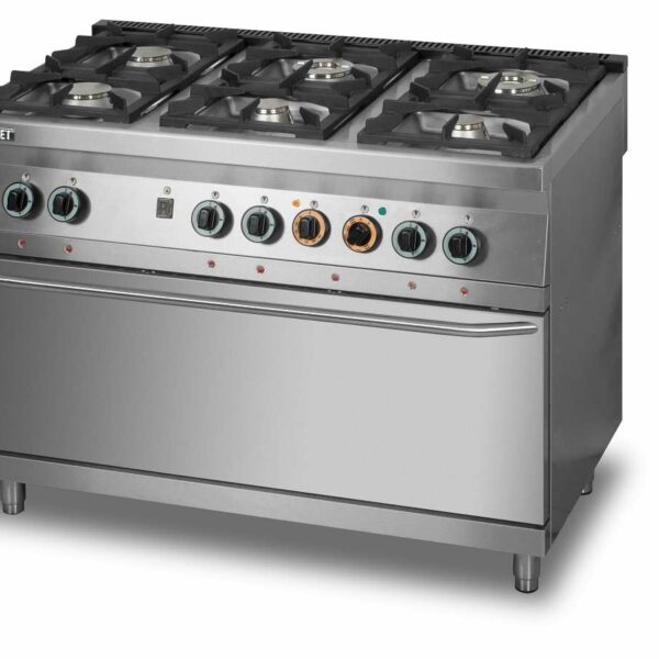 Kuchnia gazowa 6-palnikowa z piekarnikiem elektrycznym 3xGN 1/1, 1350x900x900 mm | LOZAMET, L900.KG6.PE.max