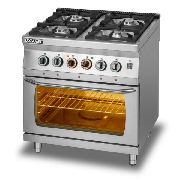 Kuchnia gazowa 4-palnikowa z piekarnikiem elektrycznym GN 2/1, 800x700x900 mm | LOZAMET, L700.KG4-PE