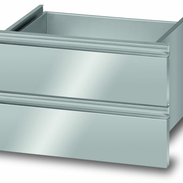 Zespół 2 szuflad GN 2/1 do szafek LUO080.5. Wykonane ze stali nierdzewnej.