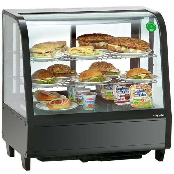 Witryna chłodnicza Bartscher Deli-Cool I:- automatyczny proces odszraniania,- pojemność: 100 litrów,- środek chłodniczy R600a,- moc przyłączeniowa: 0,16 kW / 230 V 50 Hz,- wymiary: szer. 685 x gł. 455 x wys. 675 mm,- 2 regulowane na wysokość półki, wymiary: szer. 600 x gł. 300 mm,- waga: 40,5 kg.Witryna z 3 półkami i oświetleniem. Drzwi przesuwne od strony obsługi. Wykonanie: wewnątrz i zewnątrz tworzywa sztucznego, chłodzenie powietrzem obiegowym, zakres temperatur: 2 °C do 12 °C, oświetlenie diodowe.Witryny chłodnicze - Fascynująca świeżośćŚwieże sałatki, kolorowo obłożone bagietki bądź chłodzone przekąski w witrynach chłodniczych firmy Bartscher przyciągają wzrok każdego klienta. Również napoje i drobne posiłki są dobrze widoczne w witrynach chłodniczych najwyższej jakości.W gastronomii obsługiwanej przez personel i przy wydawaniu posiłków goście mogą sami wybierać schłodzone produkty bądź personel podaje im świeże przekąski. Witryny chłodnicze oferują wszystko, co jest ważne w praktyce gastronomicznej: chłodzenie powietrzem obiegowym, funkcję automatycznego rozmrażania i dowolnie wkładane półki. Witryny chłodnicze z przeszkleniem z podwójnego szkła mają wysoką efektywność energetyczną, zapewniają stabilność i dobrą widoczność prezentowanego towaru - a energooszczędne oświetlenie LED sprawia, że prezentują się wyjątkowo okazale.
