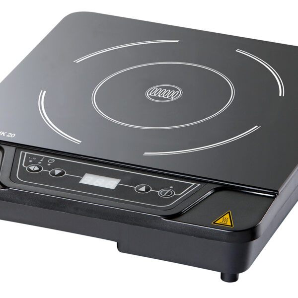 Kuchenka indukcyjna IK 20:- powierzchnia gotująca - szkło,- obudowa tworzywo sztuczne,- timer, wyświetlacz elektroniczny,- 10 stopni mocy (1100 - 2000 W),- 10-stopniowe ustawianie temperatury,- zakres temperatur: 60 °C do 240 °C,- moc przyłączeniowa: 2,0 kW / 230 V 50 Hz,- elektroniczna ochrona przed przegrzaniem,- wymiary: szer. 285 x gł. 340 x wys. 64 mm,- waga: 2,5 kg,- urządzenie nie jest przeznaczone do pracy ciągłej w zastosowaniu przemysłowym.SZYBKO, BEZPIECZNIE I WYGODNIE - GOTOWANIE INDUKCYJNEIndukcja opiera się na magnetycznym cieple, które powstaje bezpośrednio w dnie garnka. Pod szklano-ceramiczną powierzchnią znajduje się cewka indukcyjna. Po jej włączeniu powstaje pole magnetyczne, które podgrzewa dno garnka. W przeciwieństwie do innych rodzajów kuchenek nagrzewa się wyłącznie garnek lub patelnia, sama kuchenka pozostaje zimna. Do gotowania na płytach indukcyjnych potrzebne są naczynia z dnem wykonanym z magnetycznej stali szlachetnej.WIĘKSZA OSZCZĘDNOŚĆ CZASUCzas zagotowania 2 litrów wody z 15°C do 90°C*:Szklano-ceramiczna płyta kuchenna: ok. 10 min.*Gazowa płyta kuchenna: ok. 7 min.*Indukcyjna płyta kuchenna: ok. 3-4 min.** Wartości są orientacyjne i zależą od cech garnka/patelni oraz temperatury otoczenia.