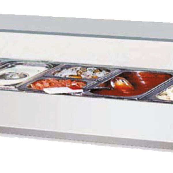 Witryny chłodnicze stanowią świetne wyposażenie wszystkich typów lokali gastronomicznych. Można włożyć 5xGN 1/3 + 1xGN 1/2. Urządzenie jest przeznaczone do przechowywania wstępnie przygotowanych surowców, które muszą do czasu wydania być przechowywane w chłodzie. Witryna chłodnicza ze stali nierdzewnej.• Elektroniczna jednostka sterująca• Prawostronnie umieszczony agregat• Szklane higieniczne zamknięcie• Temperatura komory chłodniczej +2°C / +8°C• Czynnik chłodniczy: R-134a