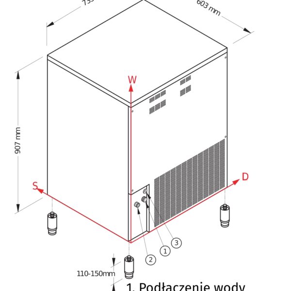 • Seria SL to linia najwyższej klasy, profesjonalnych kostkarek do lodu, które idealnie sprawdzają się w pubach, restauracjach czy hotelach• Drzwi zasobnika wyprodukowano z odpornego tworzywa ABS• Urządzenie bezawaryjne, łatwe w obsłudze, energooszczędne i wydajne z wbudowanym zasobnikiem na lód• Dużym atutem kostkarek SL jest zgrabny, stosunkowo niewielki kształt produkowanej kostki o wadze 17 g, co nie pozostaje bez wpływu na walory estetyczne serwowanych napojów• Obudowa stworzona z szczotkowanej stali nierdzewnej AISI 304• Izolacja zasobnika wolna od HCFC - organicznych związków chemicznych z grupy freonów• Izolowane chowane drzwi• Zgodność z dyrektywą RoHS• Model chłodzony powietrzem• Zużycie wody 2,5 l/kg• Kostki wytwarzane są metodą natryskową• Kostka pełna (full cube) kryształowa• Działanie elektromechaniczne• Nogi nastawne• Pompa spustowa• Czynnik chłodniczy R404A – R452A, z możliwością zakupienia urządzenia z czynnikiem chłodniczym R290• Model przygotowany do pracy w strefie tropikalnej +43°C• Łatwe czyszczenie dzięki zaokrąglonym powierzchniom• Produkcja w czasie 24 godzin:◦ Temperatura powietrza: 10°C, temperatura wody: 7°C, produkcja kg/24 h: 98◦ Temperatura powietrza: 21°C, temperatura wody: 15°C, produkcja kg/24 h: 88◦ Temperatura powietrza: 32°C, temperatura wody: 21°C, produkcja kg/24 h: 75• Warunki pracy:◦ Temperatura powietrza: od 10°C do 43°C◦ Temperatura wody: od 3°C do 32°C◦ Ciśnienie wody: od 1 bar (14 psi) do 6 bar (84 psi)