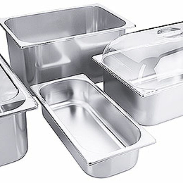 Kuweta do lodów wykonana z satynowanej stali nierdzewnej 18/10. Pokrywa z poliwęglanu sprzedawana oddzielnie. Zdjęcie poglądowe, cena obejmuje tylko kuwetę o pojemności 4,7 litra.