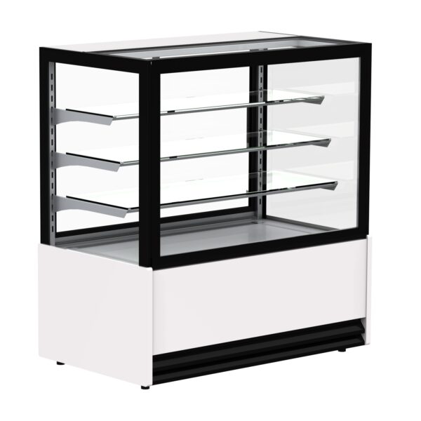 Dodatkowe informacje:- Wszystkie szyby zespolone- Szyba frontowa uchylna- Dowolna wysokość zawieszenia półki- Chłodzenie: obieg wymuszony- Termostat z automatycznym oszranianiem i cyfrowym wyświetlaczem- Korpus izolowany ekologiczną pianką poliuretanową- Obudowa zewnętrzna: płyta lakierowana MDF (kolor biały)- Automatyczne odparowanie skroplin- Oświetlenie LED - górne i pionowe- Drzwi przesuwne z szybą zespoloną- Agregat chłodniczy wewnętrzny- Ogranicznik zapobiegający wypadaniu tacek- Możliwość pochylenia półek- Powierzchnia ekspozycyjna 2,2 m2- Maksymalne obciążenie półek: 10 kg