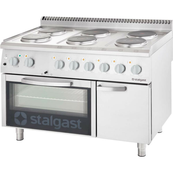 Kuchnia elektryczna 6-płyt grzewczych z piekarnikiem elektrycznym statycznym i szafką, 22,6 kW, 1200x700x850 mm | STALGAST, Linia 700