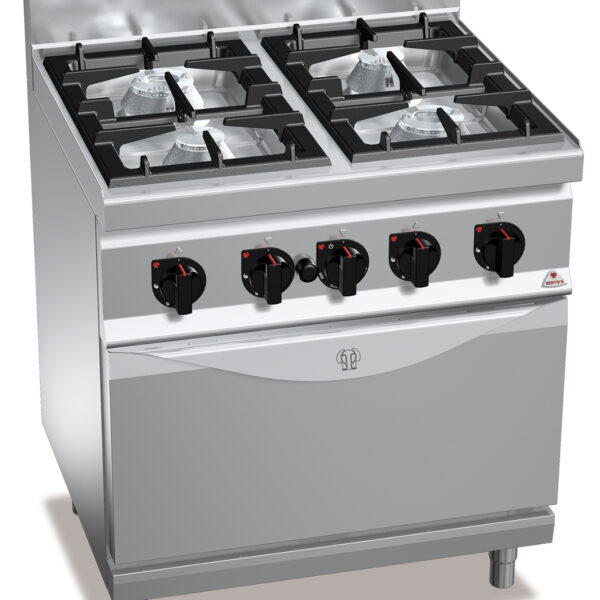 Kuchnia gazowa 4-palnikowa z piekarnikiem gazowym GN 2/1, 28,8 kW, 800x700x900 mm | BERTO'S, Macros 700, HIGH POWER, G7F4+FG