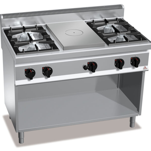 Kuchnia gazowa 4-palnikowa z płytą grzewczą, wolnostojąca, 28 kW, 1200x700x900 mm | BERTO'S, Macros 700, HIGH POWER, G7T4P4FM