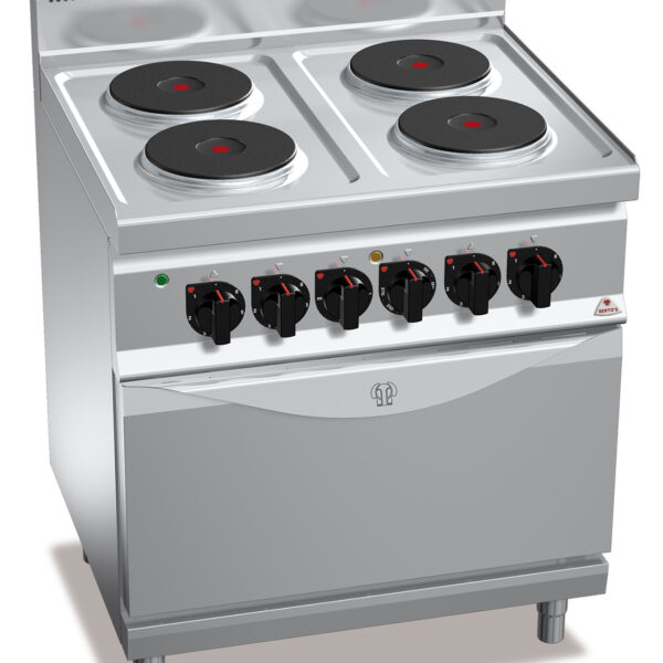 Kuchnia elektryczna 4-płytowa, płyty okrągłe z piekarnikiem elektrycznym statycznym GN 2/1, 17,9 kW, 800x700x900 mm | BERTO'S, Macros 700, HIGH POWER,
