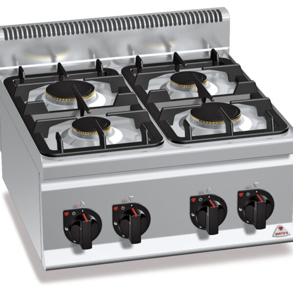 Kuchnia gazowa 4-palnikowa, nastawna, 12,4 kW, 600x600x290 mm | BERTO'S, Plus 600, LIGHT POWER, G6F4B