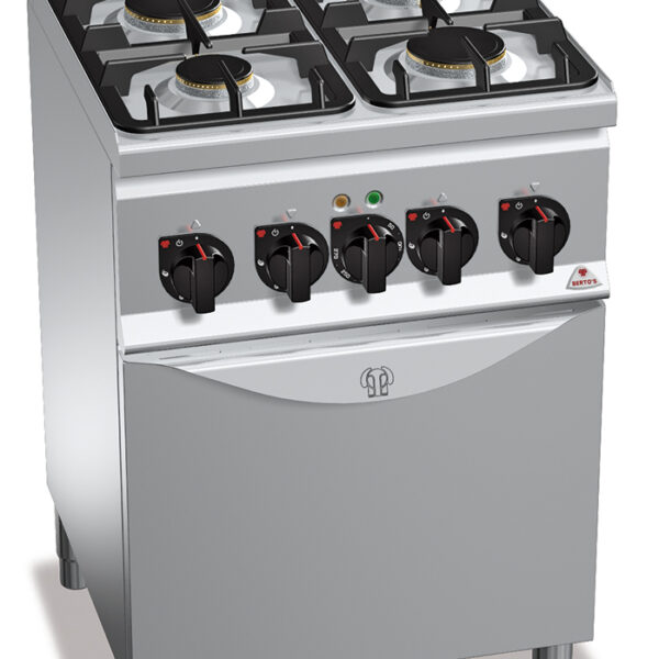 Kuchnia gazowa 4-palnikowa z piekarnikiem elektrycznym z termoobiegiem GN 1/1, 15,4 kW, 600x600x900 mm | BERTO'S, Plus 600, LIGHT POWER, G6F4+FE1