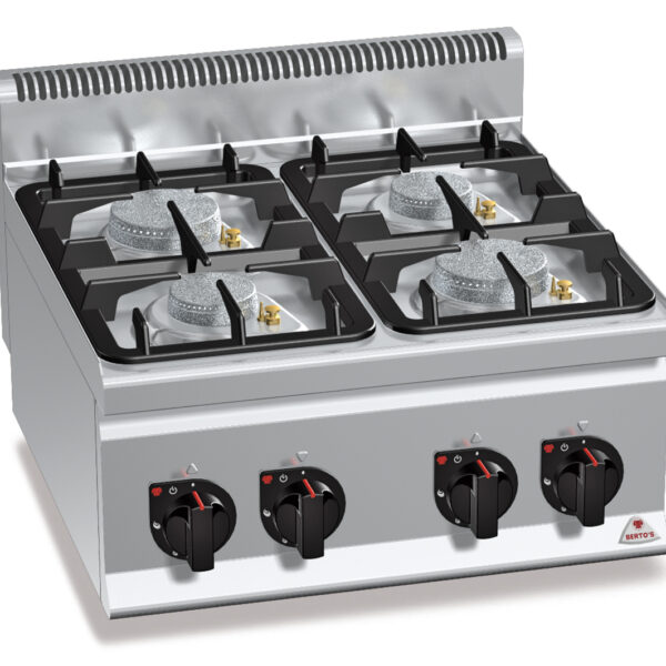 Kuchnia gazowa 4-palnikowa, nastawna, 19 kW, 600x600x290 mm | BERTO'S, Plus 600, ECO POWER, G6F4BPW