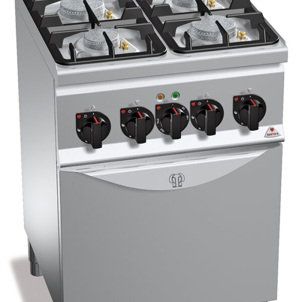 Kuchnia gazowa 4-palnikowa z piekarnikiem elektrycznym z termoobiegiem GN 1/1, 22 kW, 600x600x900 mm | BERTO'S, Plus 600, ECO POWER, G6F4PW+FE1