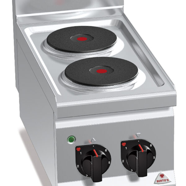 • Płyty: 2x 2 kW o średnicy 180 mm• Powierzchnia robocza oraz panele przednie wykonane ze stali nierdzewnej AISI 304• Płaszczyzna tłoczona w jednym kawałku, szczelna• Płyty żeliwne z termostatem awaryjnym i 6-pozycyjnym selektorem uaktywniającym 6 różnych koncentrycznych stref mocy• Lampki kontrolne napięcia i pracy