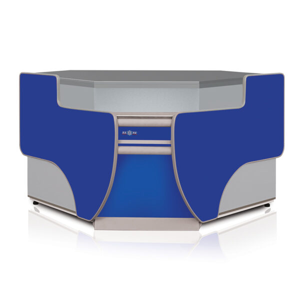 Przystawka kasowa narożna wewnętrzna z blatem ze stali nierdzewnej (szlif), podświetlanym plafonem dolnym, 1180x1180 mm | RAPA, P-D NW/90