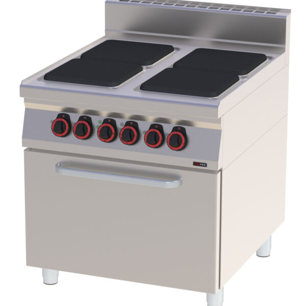 Kuchnia elektryczna 4-płytowa z piekarnikiem elektrycznym z termoobiegiem GN 1/1, płyty kwadratowe, 17,13 kW, 800x900x900 mm | REDFOX, Linia 900, SPQT