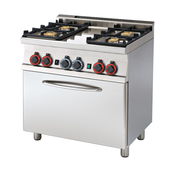 Kuchnia gazowa 4-palnikowa z piekarnikiem elektrycznym statycznym GN 1/1, 18 kW, 800x600x900 mm | LOTUS, CF4-68 GEM