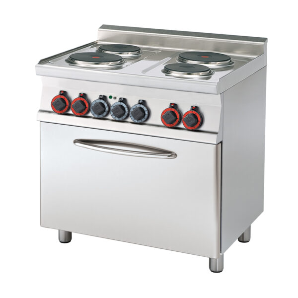 Kuchnia elektryczna 4-palnikowa z piekarnikiem statycznym GN 1/1, 8,62 kW, 800x600x900 mm | LOTUS, CF4-68 ET