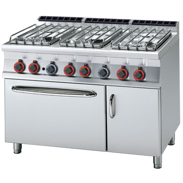 Kuchnia gazowa 6-palnikowa z piekarnikiem gazowym GN 2/1 i szafką, 42,3 kW, 1200x700x900 mm | LOTUS, CF6-712 GV/P