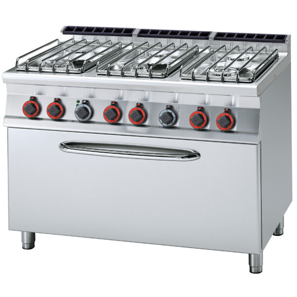 Kuchnia gazowa 6-palnikowa z piekarnikiem elektrycznym 3x GN 1/1, 35 kW, 1200x700x900 mm | LOTUS, CF6-712 GE/P