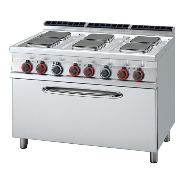 Kuchnia elektryczna 6-palnikowa z piekarnikiem elektrycznym 3x GN 1/1, 22,5 kW, 1200x700x900 mm | LOTUS, CFQ6-712 ET