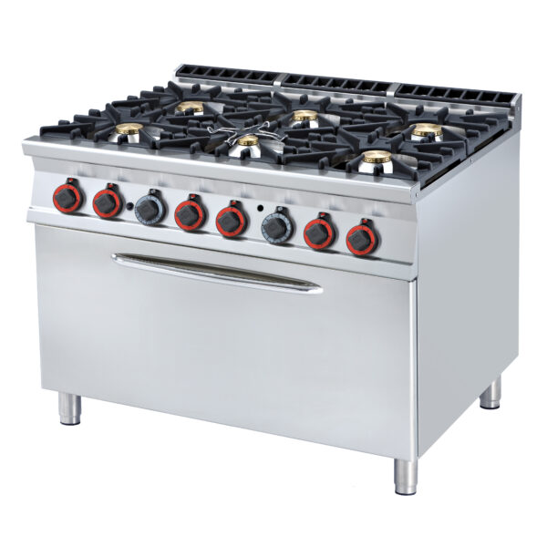 Kuchnia gazowa 6-palnikowa z piekarnikiem gazowym 3x GN 1/1, 58 kW, 1200x900x900 mm | LOTUS, CF6-912 G