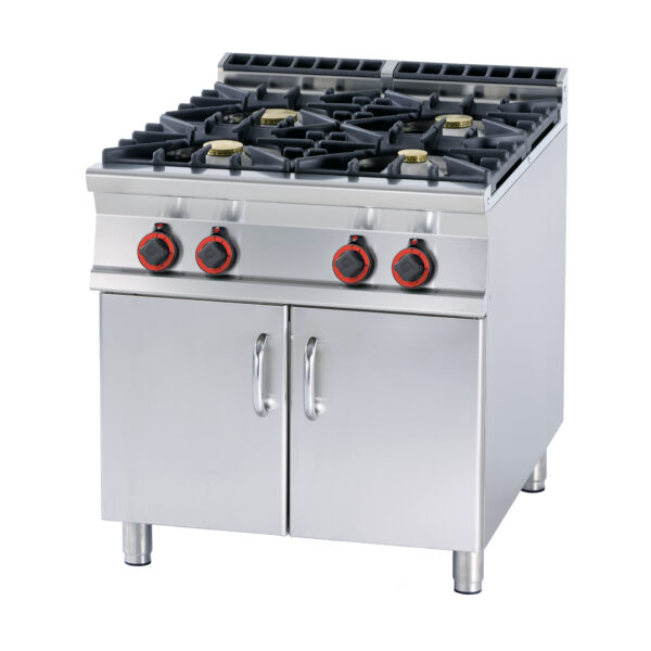 Kuchnia gazowa 4-palnikowa z otwartą szafką, 28 kW, 800x900x900 mm | LOTUS, PC-98 G