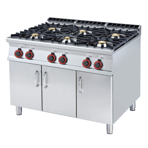 Kuchnia gazowa 6-palnikowa z szafką otwartą, 45 kW, 1200x900x900 mm | LOTUS, PC-912 G