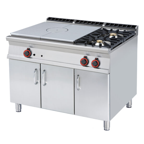 Kuchnia gazowa z płytą żeliwną, 2 palnikami i otwartą szafką, 29 kW, 1200x900x900 mm | LOTUS, TP2-912 G