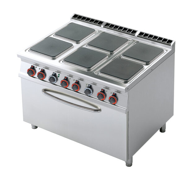 Kuchnia elektryczna trójfazowa 6-palnikowa z piekarnikiem elektrycznym 3x GN 1/1, 33,2 kW, 1200x900x900 mm | LOTUS, CFQ6-912 ETV