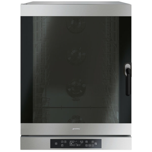 • Pojemność: 10 blach 600x400 mm lub GN 1/1• Podłączenie elektryczne / Całkowita moc przyłączeniowa: 400V 3N 50/60Hz / 16 kW • Odległość między prowadnicami: 77 mm• Wentylatory: 3• Otwieranie drzwi: boczne, zawiasy po lewej stronie• Konstrukcja: stal nierdzewna• Komora pieczenia: stal nierdzewna• System nawilżania: wbudowany• Sterowanie: dotykowe, wyświetlacz TFT
