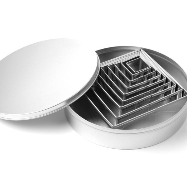 • Zestaw 9 foremek do wycinania kwadratów w różnych rozmiarach• Wysokość foremki: 30 mm• Wykonane ze stali nierdzewnej